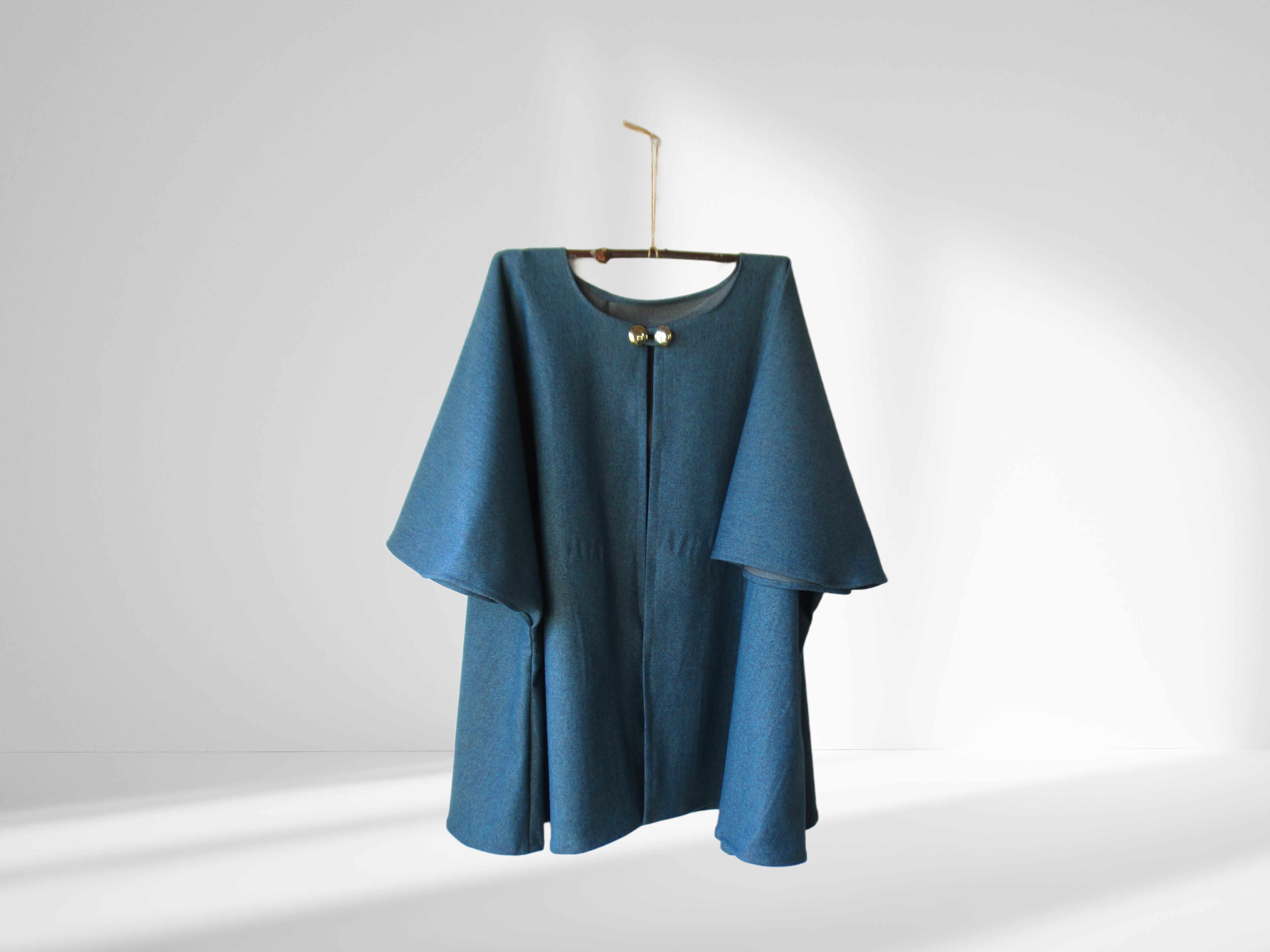 布巾110cmを目一杯使った大人フリーサイズのケープです。長さは約67cmで、かなりたっぷりしています。
